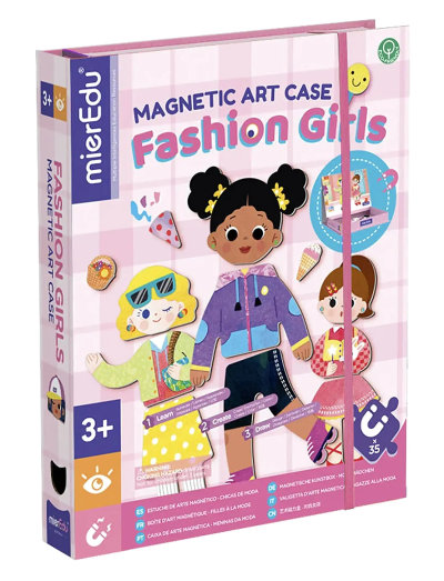 Educational and magnetic dress up fashion playset, in a quality box, easy to carry and fun for play on the go.