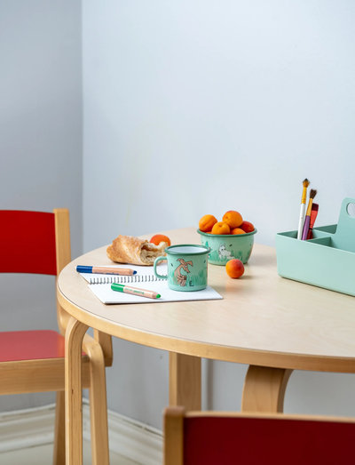 Muurlan Muumi-emalilinja esittelee laajan malliston laadukkaita emalituotteita pöydän kattamiseen ja ruoanlaittoon. Muurlan emaliastiat koostuvat hiiliteräsytimestä, jossa on kaksinkertainen emalipinnoite. Muumikuvitukset ovat Muurlan taitavien suunnittelijoiden luomia alkuperäisistä Muumi-sarjakuvituksista. Emalituotteet ovat käsityötä ja siksi tuotteiden ulkonäkö voi hieman vaihdella. Ei mikroaaltouuninkestävä.
