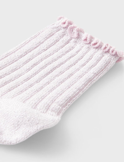 Nämä sukat ovat loistava lisäys minkä tahansa lapsen vaatekaappiin. Ne on valmistettu pehmeästä ja mukavasta sekoituksesta puuvillaa, metallikuituja, polyamidia ja elastaania. Sukissa on uurrettu kuvio ja röyhelöinen reuna, mikä tekee niistä sekä tyylikkäitä että käytännöllisiä.