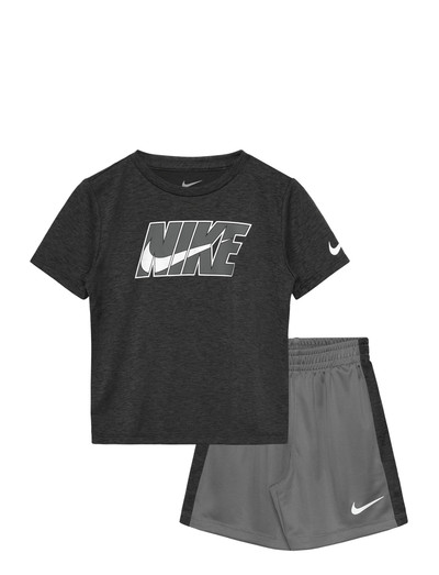 Tämä Nike Kids -setti sisältää lyhythihaisen t-paidan ja shortsit. T-paidassa on rohkea Nike-logo edessä. Shortsit ovat mukavan istuvat ja niissä on sivusuuntainen raita.