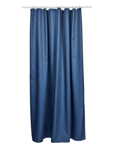 Yksivärinen ja tyylikäs suihkuverho, jossa on koristeellinen jacquard-kudottu raita valkoisella, vettä hylkivällä materiaalilla. 180x200 cm ja 100 % polyesteriä. Mukana muovikoukut ripustamista varten. Tämä tuote on Öko-tex-sertifioitu.