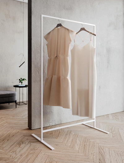 pulverimaalatusta teräksestä valmistettu vaateteline tarjoaa minimalistisen ilmeen ja selkeät, suorat linjat, jotka muodostavat elegantin ja huomaamattoman kehyksen vaatteillesi.