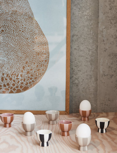 Toppu Eggcup, joka on valmistettu 100 % kivitavarasta, on viehättävä lisä aamiaispöytään. Jokainen munakuppi on käsintehty ja maalattu huolella, ja se huokuu ainutlaatuista luonnetta ja tyyliä. Ne myydään kahden kappaleen pakkauksessa, ja ne tuovat ruokapöytään ripauksen leikkisyyttä.