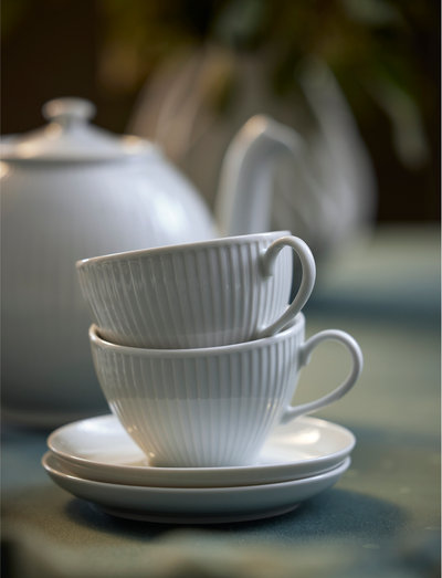 Plissé-kuppiin voi ostaa 14 cm:n aluslautasen 18 cl:n kuppiin (19604).