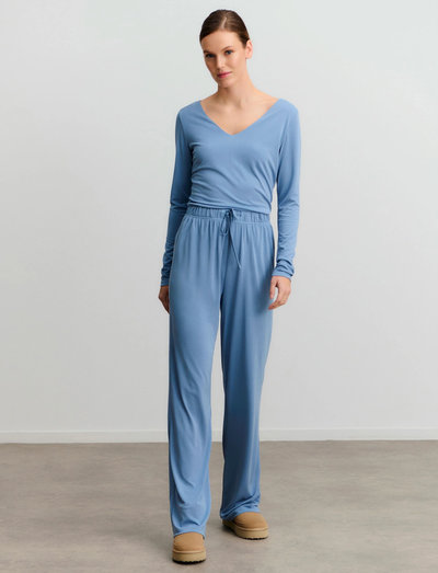 Pehmeästä modaalista valmistettu pitkähihainen toppi tarjoaa mukavan ja imartelevan istuvuuden. V-pääntie tuo ripauksen eleganssia, mikä tekee siitä täydellisen kerrospukeutumiseen tai sellaisenaan käytettäväksi.