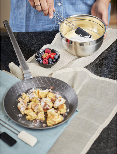 RÖSLE-lastan kestävä silikonipää kestää rasvaa, öljyä ja happoja. Silikonilapion joustava puoli mukautuu kulhon muotoon, kun taas kova puoli on ihanteellinen tasaiseen levittämiseen. Lämpötilan kestävä -30 °C:sta +230 °C:een. Astianpesukoneen kestävä.(R12450).