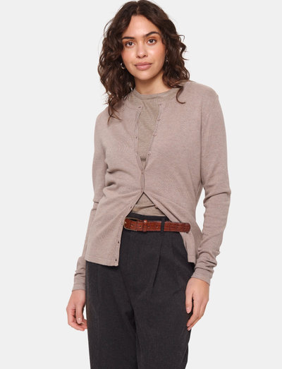 Tämä neuletakki on klassinen ja monipuolinen vaate, jota voi pukea ylös tai alas. Se on valmistettu pehmeästä ja mukavasta viskoosi- ja polyamidiyhdistelmästä ja siinä on pyöreä pääntie ja pitkät hihat. Neuletakki sopii täydellisesti paitaan tai bluusiin päälle puettavaksi tai käytettäväksi itsenäisesti viileämmillä päivinä.