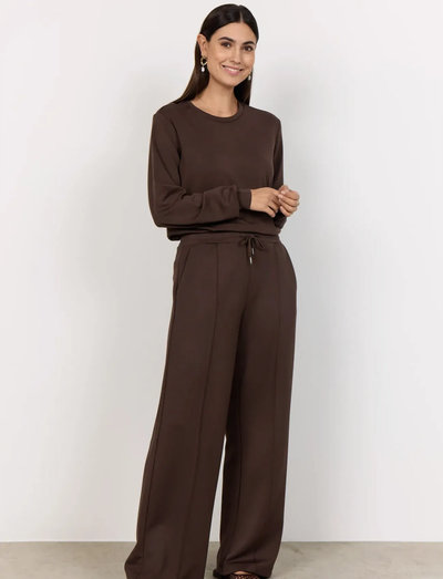 Nämä pitkät housut tarjoavat mukavan istuvuuden ja monipuolisen tyylin, ja niissä on joustava vyötärönauha kiristysnyörillä. Suora lahjemalli tekee niistä helpot yhdistää sekä rentojen t-paitojen että tyylikkäiden puseroiden kanssa monenlaisiin tyyleihin.