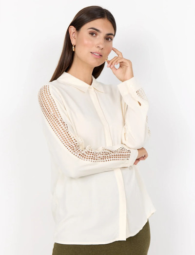 Regular fitTämä paita on valmistettu 100 % LENZING™ ECOVERO™ -viskoosista, ja siinä on hienoja pitsiyksityiskohtia hihoissa. Piilotettu nappilista ja klassinen kaulus täydentävät mallin. Yhdistä se räätälöityihin housuihin tai midi-hameeseen saadaksesi tyylikkään kokonaisuuden.