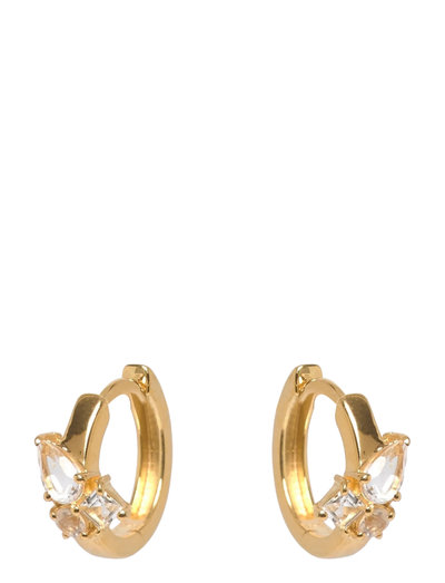 Nämä klassiset korvarenkaat on koristeltu valkoisilla topaaseilla, jotka heijastavat valoa kauniisti. Valmistettu 100 % kierrätetystä hopeasta ja päällystetty 18K kullalla, ne ovat ihanteellinen valinta niille, jotka arvostavat ajatonta eleganssia.