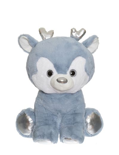 A deer with that little big extra all with an incredibly soft and dense fur pile of the highest quality. The silver glittery coloured eyes matches the silver coloured fabric on the horns and the paws. The most cuddly and sweetest cuddly toy but also a beutiful interior design statement in the nursery. Size 65 cm. Tested and approved from 0+ years according to EN71 and CE marked.
