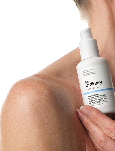 Niasiiniamidi 5 % kasvojen ja vartalon emulsio on monikäyttöinen koostumus, joka auttaa häivyttämään tummia läiskiä kasvoilla ja vartalolla, jotta ihonsävy olisi tasaisemman näköinen.Se on testattu kaikilla ihonsävyillä, ja se kohdistuu tummien läiskien ulkonäköön kasvoilla, kaulalla, rinnalla ja käsivarsilla - tärkeimmillä alueilla, jotka ovat alttiita epätasaiselle ihonsävylle - tasaisemman sävyn saavuttamiseksi koko kasvoilla ja vartalolla.