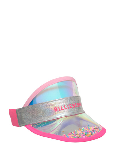 Cette visière amusante présente une finition irisée et est confectionnée dans une matière transparente remplie de confettis. Elle possède un imprimé griffé, des finitions de bordures et une étiquette tissée rayée. L'arrière élastiqué assure un ajustement personnalisé.