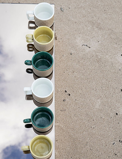 A coffee cup in retro design with a contemporary touch. Inside the must-have spring colour yellow. Outside in patterned beige. Moreover, it has double handles.