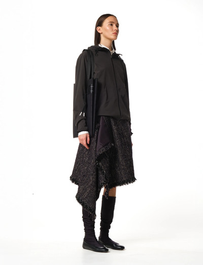 Ce grand cabas présente un design plié unique, formé à partir d'une seule surface plane. Confectionné en nylon Satellite Black léger, le sac possède une finition résistante à l'eau. Son intérieur est divisé en deux compartiments, dont un avec une poche zippée pour l'organisation. Une cordelette pratique et un mousqueton permettent de fixer vos clés, accessibles via une tirette externe.
