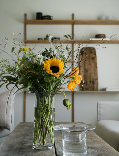 A vase with an open arm – the shape that spreads out at the top captures both the flower and the eye