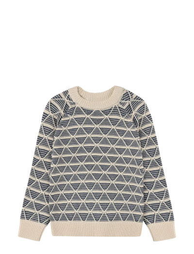 Avec son motif tricoté graphique bicolore saisissant, ce pull à manches longues offre une coupe élégante et confortable. Il est conçu avec un col rond classique, des manches raglan et des détails en tricot côtelé aux poignets, au col et à l'ourlet. Confectionné en coton 100 % biologique doux, ce pull est un ajout intemporel à toute garde-robe.