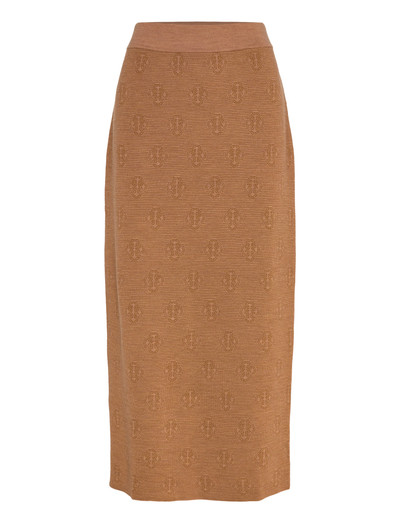 Arborant un motif monogramme sur l'ensemble, cette jupe en maille offre un look sophistiqué. Elle présente une coupe slim, une taille élastique côtelée confortable et une longueur midi flatteuse. Pour l'entretien, laver en machine à l'envers avec un programme laine et remodeler lorsqu'elle est humide.