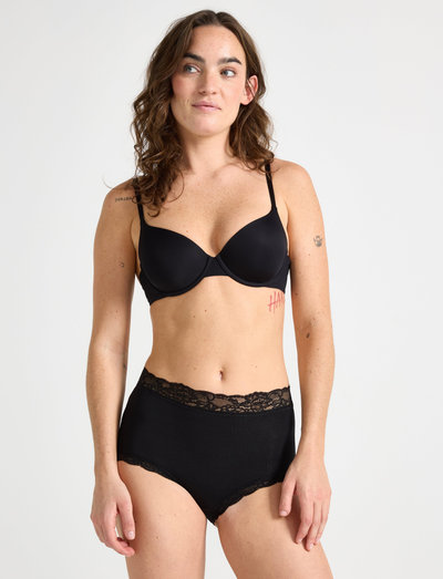 Comfy briefs in a soft and stretchy cotton blend with a high waist and lace trims.