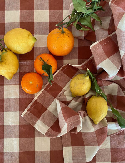 These napkins come in a set of four. bertel is a gingham pattern in terracotta and apricot. the size of the checks are 4×4 cm . br/>the size of the napkins are 40×40 cm . it’s also available as tablecloth.these napkins are gotscertified and made in 100 % organic cotton.