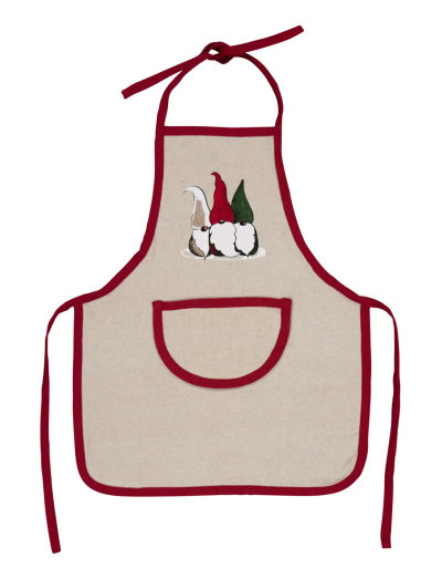 Wonderful children's apron with a lovely Santa Claus print and a large pocket on the stomach, the entire apron has a beautifully edged with Christmas red ribbon and you tie it at the neck for the right height for the child.