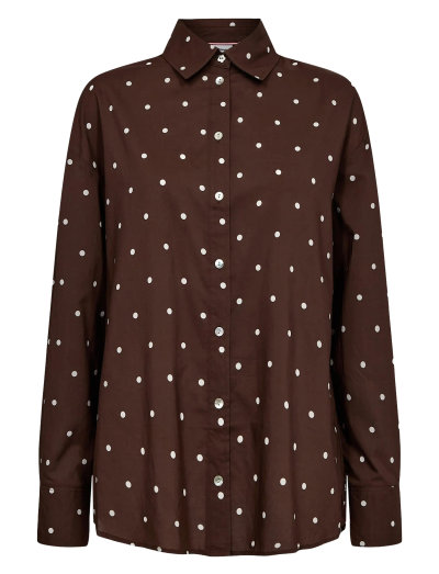 Chemise boutonnée classique ornée d'un motif à pois intemporel. Cette chemise à manches longues offre un look raffiné qui convient aussi bien aux occasions décontractées qu'habillées.