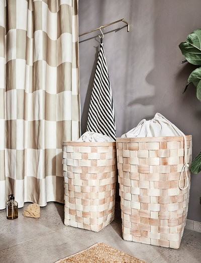 Elevate your bathroom with the Chess Shower Curtain, a new addition to the Chess Series. Meticulous detailing in the brass rings complements the Pieni bath collection. No extra curtain rings needed, and it effortlessly fits a rail up to 150 cm.