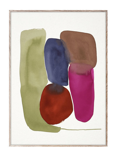 Blemish 02 by Danish artist Berit Mogensen Lopez captures the informal expression of visual and textural experimentation. Constructed from a series of overlapping watercolour forms, their blemished and broken shapes slide into one another to form a composition that appears as if still moving. Deeper brown and red tones intertwine with vibrant pink, mint green and a deep blue, combining to create a texturally rich arrangement of forms.