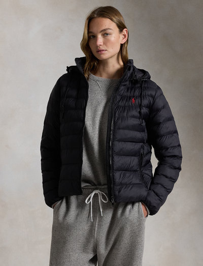 Made with water-repellent fabric, this quilted jacket features an insulating fill and a removable drawstring hood. It packs into its own pocket for easy storage and transport.Slightly relaxed fit. Intended to hit at the hip.Size medium has a 25.25" back body length and a 34.25" sleeve length. Body length is taken from the high point of shoulder. Sleeve length is taken from the center back of the neck and changes 0.75" between sizes.Zip-off drawstring hood. Two-way full-zip front with a flap at the top that prevents chafing.