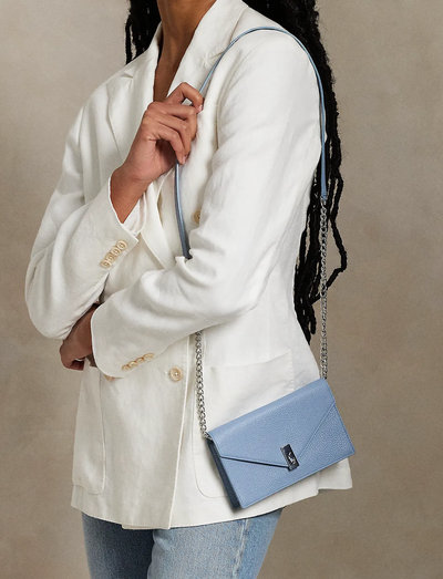 Confectionné avec une finition subtilement texturée, ce portefeuille apporte une touche raffinée à toute tenue. Il est doté d'une élégante bandoulière chaîne et d'un logo signature, alliant fonctionnalité et style emblématique.