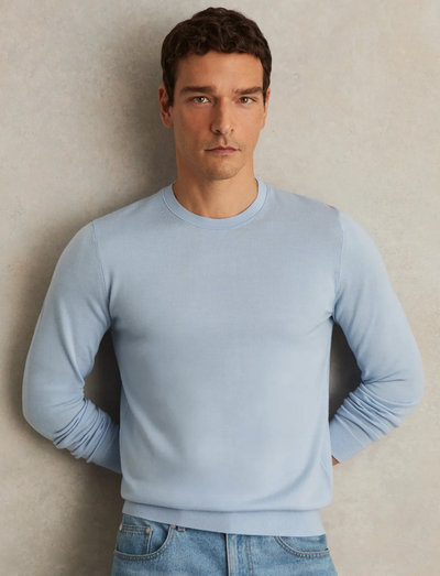 Confectionné en laine mérinos douce, ce pull léger présente une encolure ras du cou classique et des finitions côtelées raffinées.