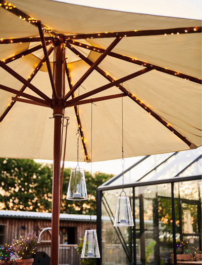 Light up your summer evenings around the garden table with Knirke Solar Parasol. Simply install the copper