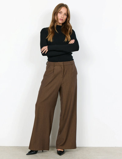 Avec leur coupe flatteuse à jambes larges, ce pantalon offre une silhouette sophistiquée. Confectionné dans un mélange de polyester recyclé, de viscose et d'élasthanne, il offre à la fois confort et style. La taille haute et les plis subtils rehaussent le design général, ce qui en fait un ajout polyvalent à toute garde-robe.