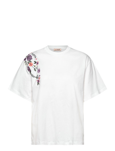 Blómaútsaumur gefur klassískum, stutt ermi bol þessa fágaða yfirbragð. Með kringlótt hálsmál og þægilegri snið er þessi bolur fjölhæf viðbót við hvaða fataskáp sem er.