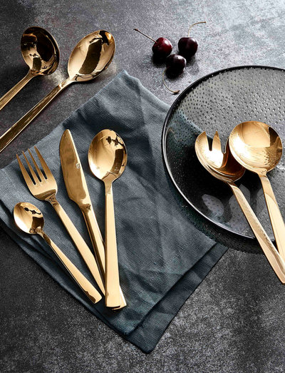 RAW - bestik 16 dele sæt guld farvet belægning 4 x (kniv, ske, gaffel, kaffeske) gaveæske - Hnífaparasett