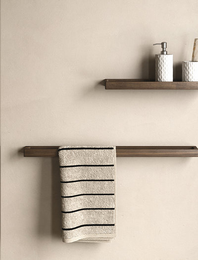 Towel Rack is a minimalist rack, crafted from oak and ash with a smoked finish. It is lacquered to protect the product from moisture. The Towel Rack adds a modern, functional element to the bathroom and makes it easy to integrate your towels into the decor. Hang your towel on the rack to keep it fresh and dry until the next time it's needed.