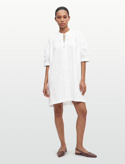 Þessi skyrtukjóll er með hálslínu með böndum og afslappað snið. Hönnunin inniheldur þriggja fjórðu ermar sem auka hversdagslegt yfirbragð hennar.