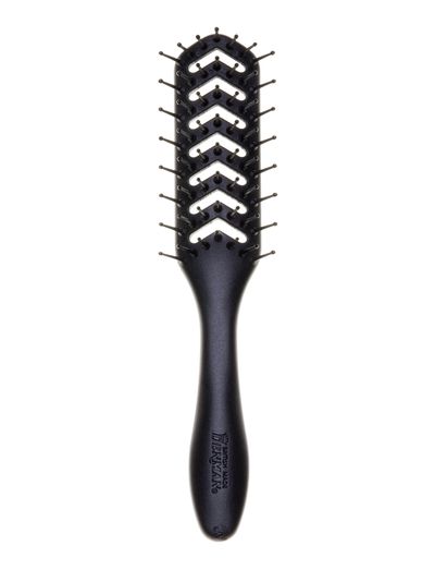 "DENMAN Jack Dean D200 Skeleton Brush is a good choice for blow-drying to speed up drying time and provide a flexible, natural styling effect. The brush is perfect for adding volume, as it's easy to lift hair from the roots with it, and its strategically placed air vents allow warm air to circulate right at the base of the hair for faster blow-drying. The rounded tips of the flexible bristles gently glide through hair and detangle knots. The lightweight brush won't tire your hand during blow-drying.