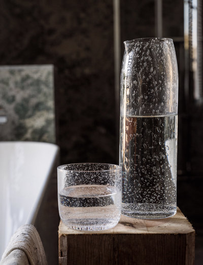 ERNST drinking glasses in 2-packs are created in durable, clear glass with small bubbles that give each glass a unique and lively feeling. Their minimalist design makes them perfect for everything from breakfast juice to evening meal drinks. A versatile and timeless addition that blends into every setting and tableware.