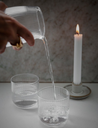 ERNST ribbed drinking glasses are part of a series of several different glasses for different occasions. There is also a jug in the same series. Nice and elegant to set the table with and good to drink from.