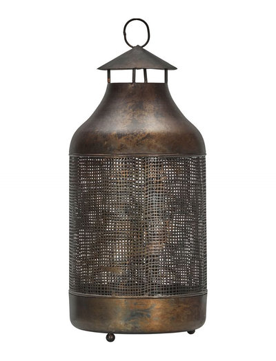 Enhance your interior with this exquisite antique brown iron hurricane from HDNett, crafted in a bespoke bottle shape that diffuses a warm and inviting light. - Handmade artistic piece - Antique brown finish - Bottle-shaped elegance - Versatile decorative function Add this charming feature to your home décor for an ambient atmosphere.