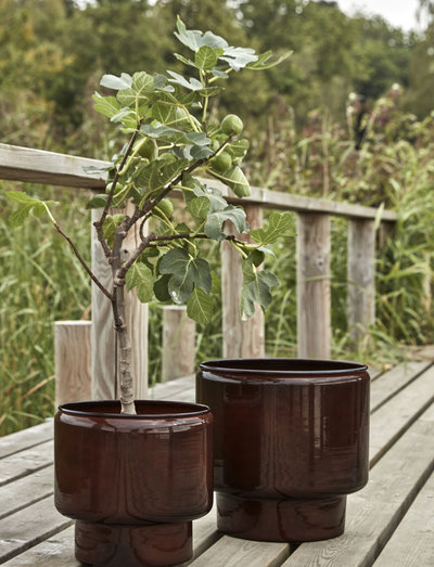 Create a relaxing outdoor space with this set of 2 iron planters from house doctor. their dark brown glaze draws attention to your plants with its glossy finish and enhances the overall look and feel of your garden or balcony. place the planters by your front door, on your patio or gather a selection of planters by your outdoor furniture to create a calming oasis. a place to relax for hours on end. the planters may vary in finish and colour as they are made of recycled steel from cars which are cut up and turned into these unique designs. please note that the planters come with drainage holes and plugs for both indoor and outdoor use. as the planters are not 100% waterproof, we recommend using an insert or placing a protective pad underneath.
