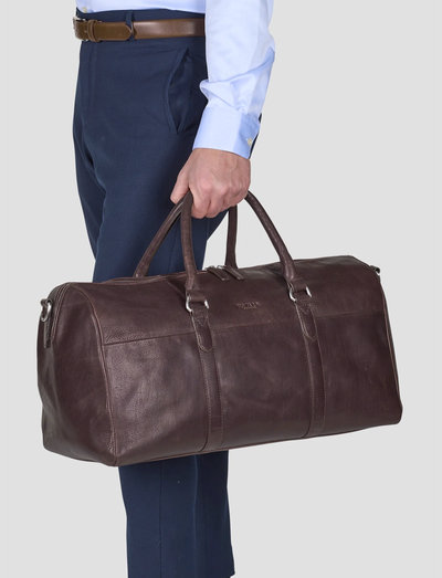 Þessi taska er hönnuð fyrir helgarferðir og er með aðalhólf sem er tryggt með rennilás. Ytri vasi með rennilás veitir skjótan aðgang, en að innan er bæði innstungu vasi og vasi með rennilás til að skipuleggja geymslu. Hún kemur með stillanlegri og aftakanlegri axlaról, ásamt leðurupplýsingum.