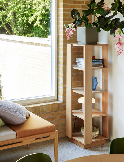Introducing the Merge Shelf Unit, an esteemed addition to the well-loved Merge family, beautifully crafted from elegant natural oak veneer. Embrace your environmental ethos with this piece made from FSC-certified wood, ideally suited for interiors arranged with care and consideration. Not merely a functional storage option, this unit serves as a sculptural centrepiece, perfect for fitting neatly into a corner or segmenting spaces within a room. Additionally, its captivating side designs add a hint of intrigue, elevating any living area with both style and practicality.