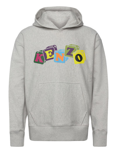 Þessi hettupeysa er með leikandi hönnun með blokkstöfum og afslappað, yfirstærð snið. Hún er fullgerð með klassískum kangarúvösum og rifprjónuðum kantum.
