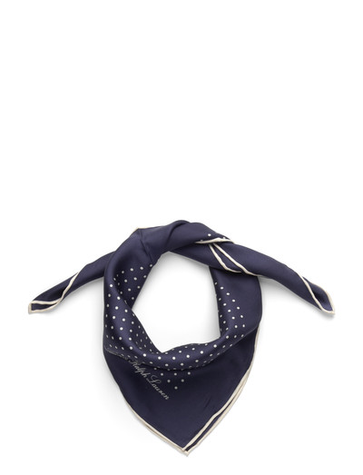 The smooth hand of silk twill brings a graceful drape to this square scarf, which showcases a charming polka-dot print. Punctuated by Lauren’s signature script logo, this style is detailed with hand-rolled ends for an artisanal finish.22" L x 22" W.Hand-rolled ends.Script “Lauren Ralph Lauren” logo printed at the corner.100% silk.