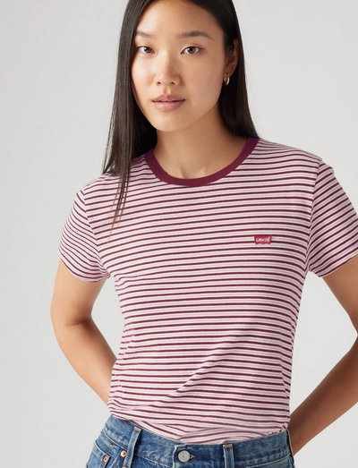 Þessi strigaða T-bolur er klassískur fataskápshluti. Hann er með ávalan háls og stuttar ermar. T-bolinn er úr mjúku og þægilegu bómúlli.