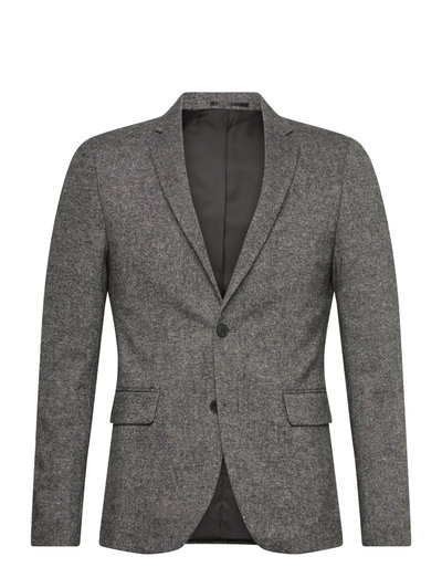Struktureraðar axlir og sniðin passa skilgreina þennan smekklega jakka. Tveggja hnappa lokunin og vasar með loki auka klassískt útlit hans, sem gerir hann að fjölhæfri viðbót við hvaða fataskáp sem er.