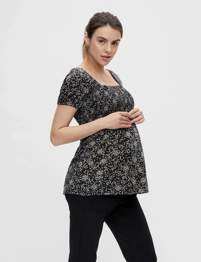 MATERNITY JERSEY TOP WITH SMOCK AT BREAST.