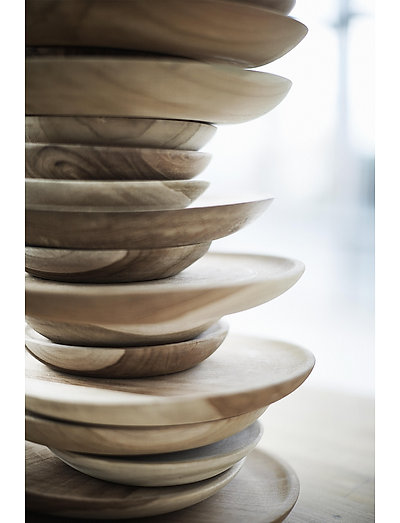 If you want a modern, warm and cosy table arrangement these teak plates from Muubs are ideal. These plates look good on a table alone but are also combinable with other kinds of plates, glasses, bowls etc. The plate can also be used as a platter with candles. Tip: An innovative way to use the plate is to turn it upside down and make a nice arrangement with cheese, meat, salads etc. on the bottom of the plate. It gives a great look and is never seen before. Avoid putting the plates in the dishwasher. The small plate by Muubs is handmade from natural teakwood. Use the small wooden plate as a dessert plate or as a wooden saucer. Since each plate is handmade from natural wood, they will vary a bit in shape, width and depth. Each plate varies in its form and colour. The natural wooden nuance of the plate depends on the teak that the plate is made from. Muubs wooden plates are all foodsafe and will be a great supplement to the modern kitchen.